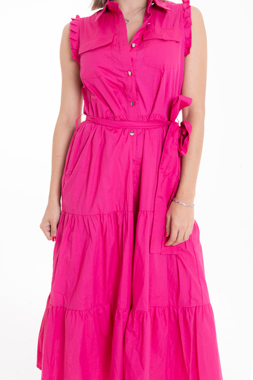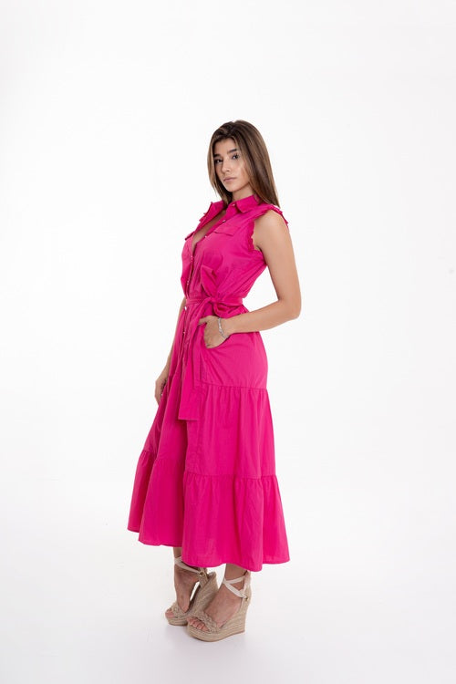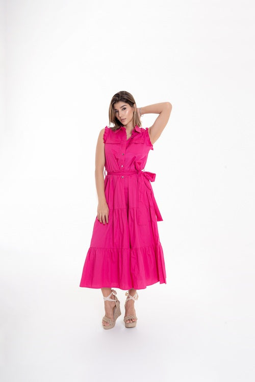 Vestido Midi Rosa Fucsia con Cinturón