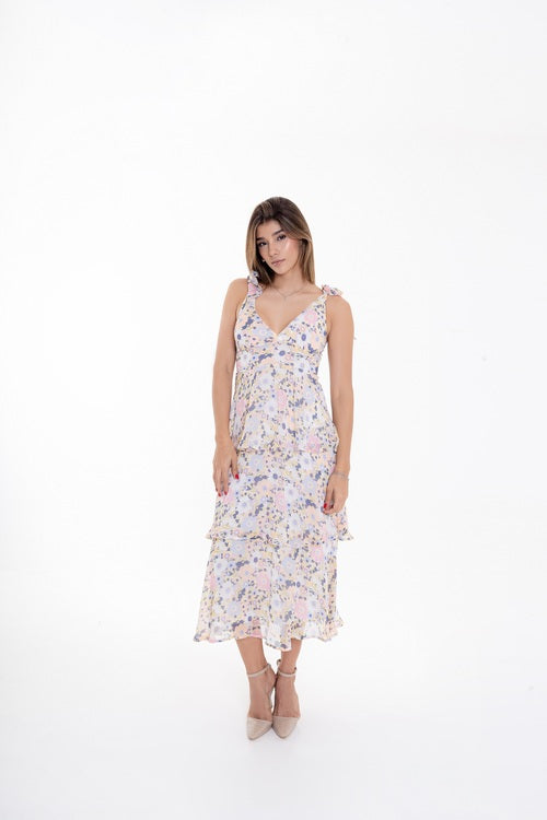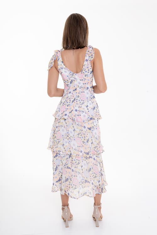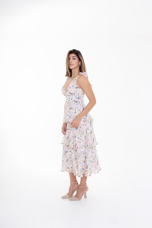 Vestido Midi Floral con Volantes