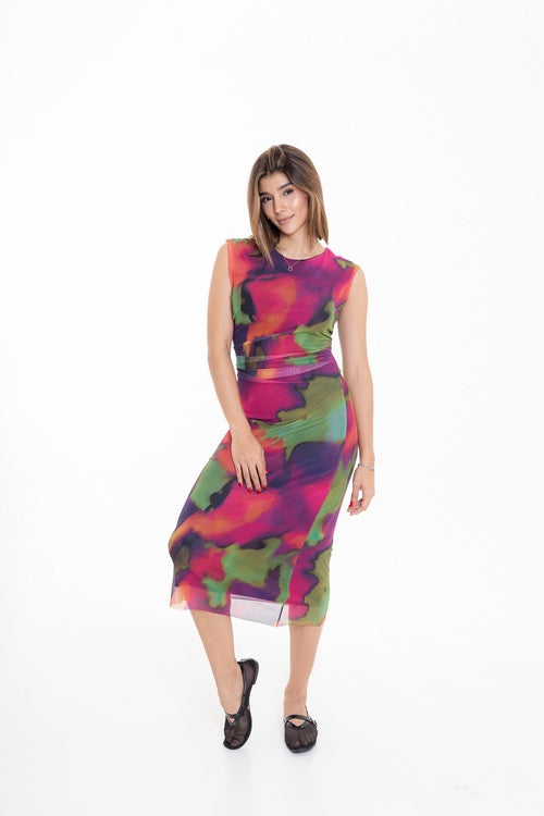 Vestido Midi Estampado Abstracto