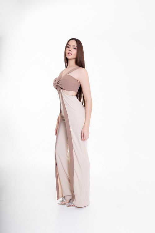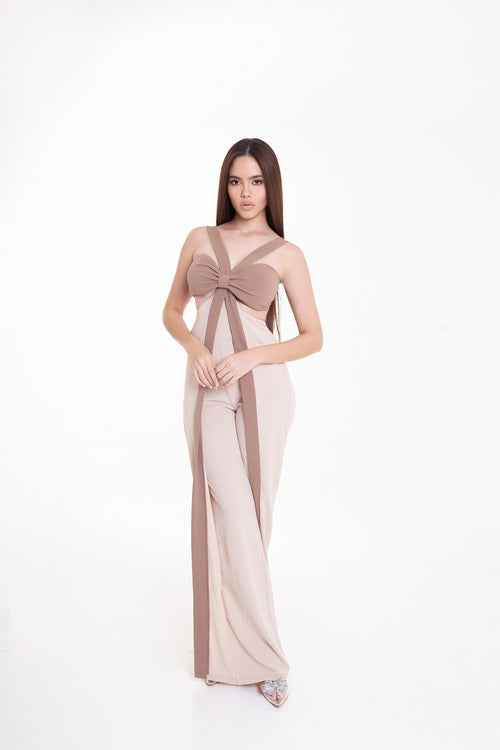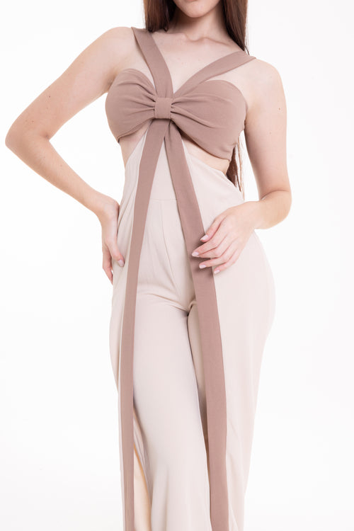 Jumpsuit Bicolor con Moño Frontal Beige